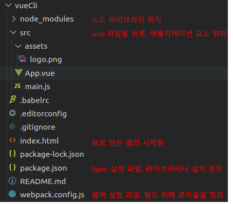 CLI에서 제공하는 명령어를 이용하면 뷰 애플리케이션을 개발하기 위한 초기 프로젝트 구조를 쉽게 구성 가능.